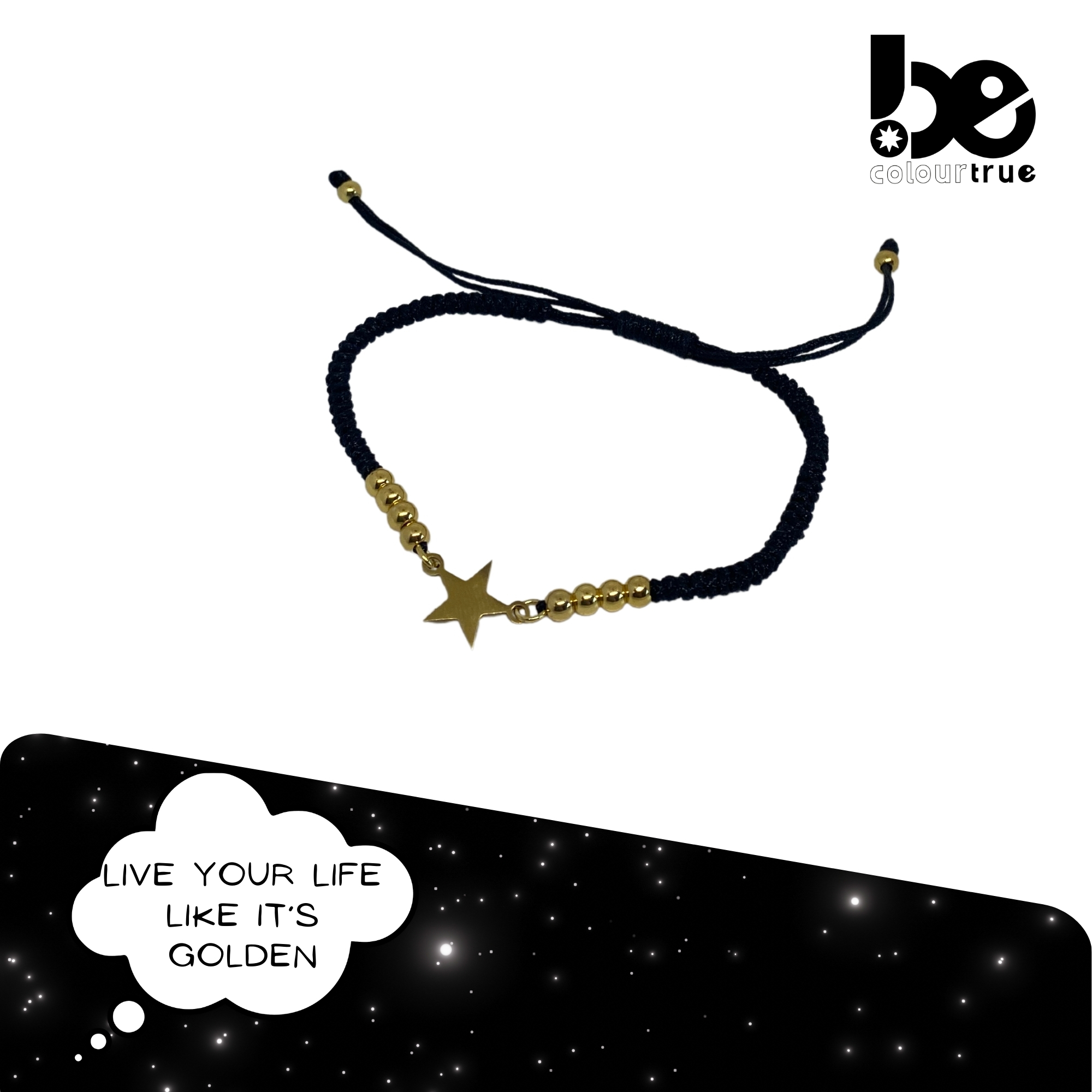 Stap in de spotlight met onze zwarte armband, accentueerd door een stralend gouden ster bedeltje. Perfect passend om elke pols.⭐